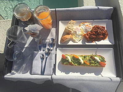 - Lastly Hotel S’Agaro, slightly bigger but in a colonial-style building with a stunning garden terrace overlooking the pool. Rooms were modern with a large balcony. Dinner on the terrace was superb, especially the figs and vanilla cream dessert!